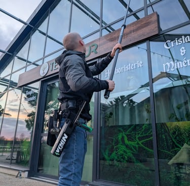 Pour les Entreprises : Un entretien régulier de vos vitrines, bureaux et locaux commerciaux pour un rendu soigné et un accueil client valorisant.